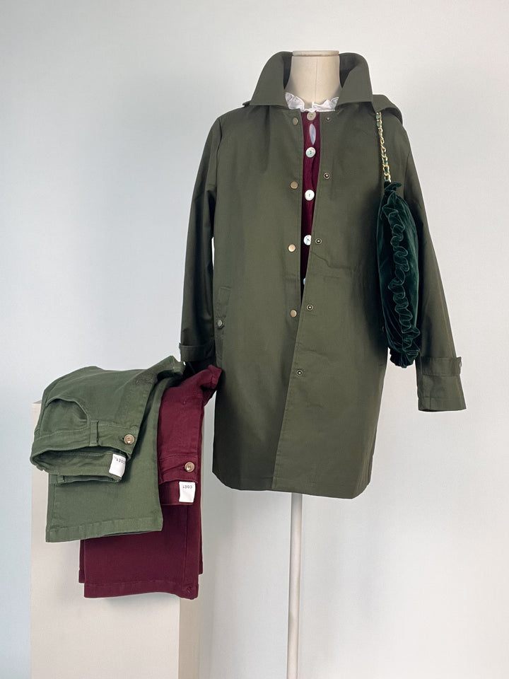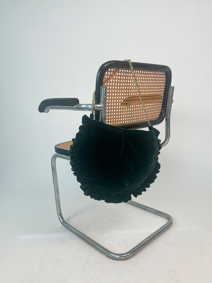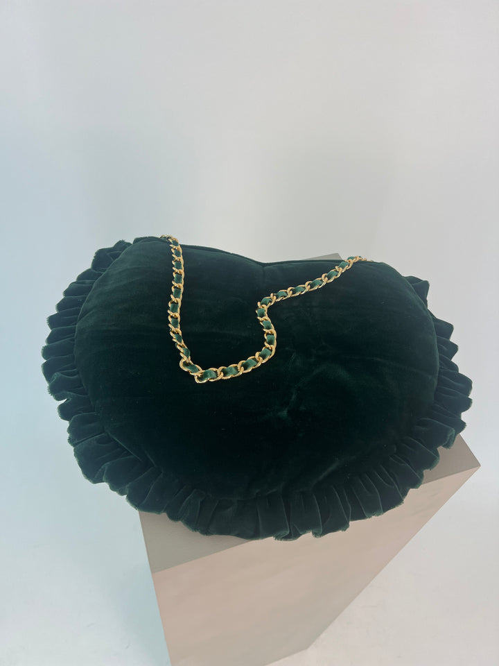 - Bolso de terciopelo verde botella.