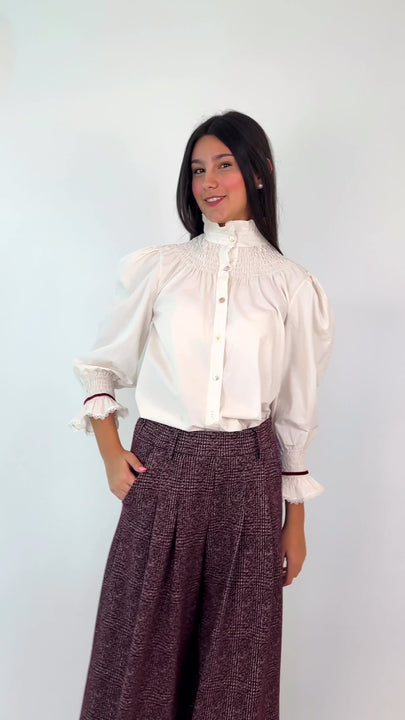 - Combínala con el pantalón Magda vino o marrón, hacen un look de 10.