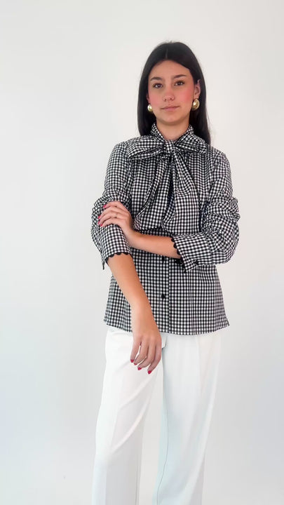 - Camisa confeccionada en un tejido vichy negro de cuadros de algodón.