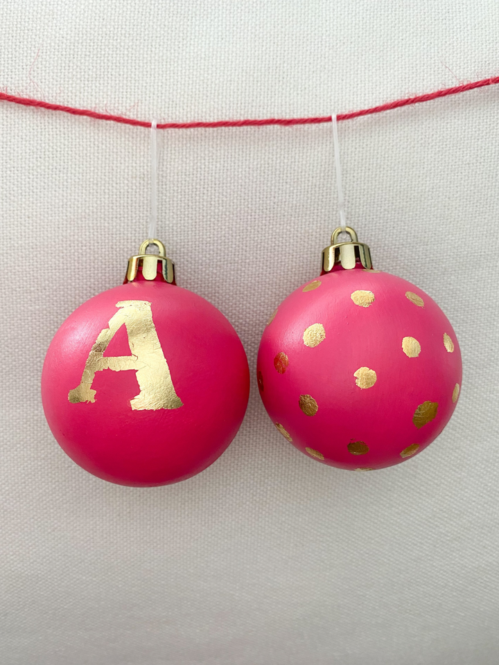 - Bola de navidad de color con inicial realizada en pan de oro.