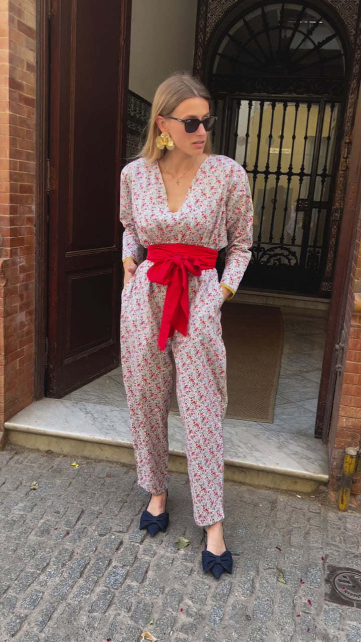 - Frunce la cintura con elástico y fajín rojo incorporado.