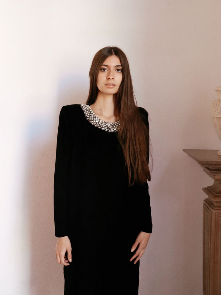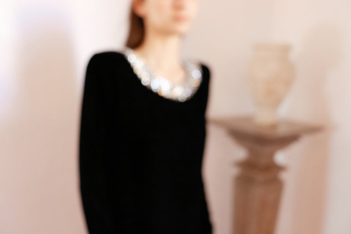 - Cuello a la caja con detalle de pedrería. Botón posterior y abertura.